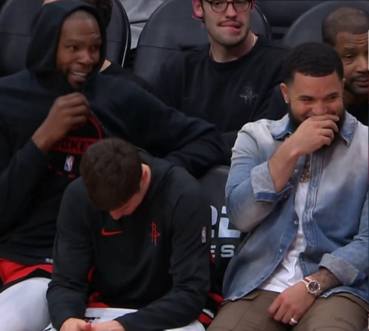 GIF-终场前大比分领先KD和范弗里特、小谢有说有笑